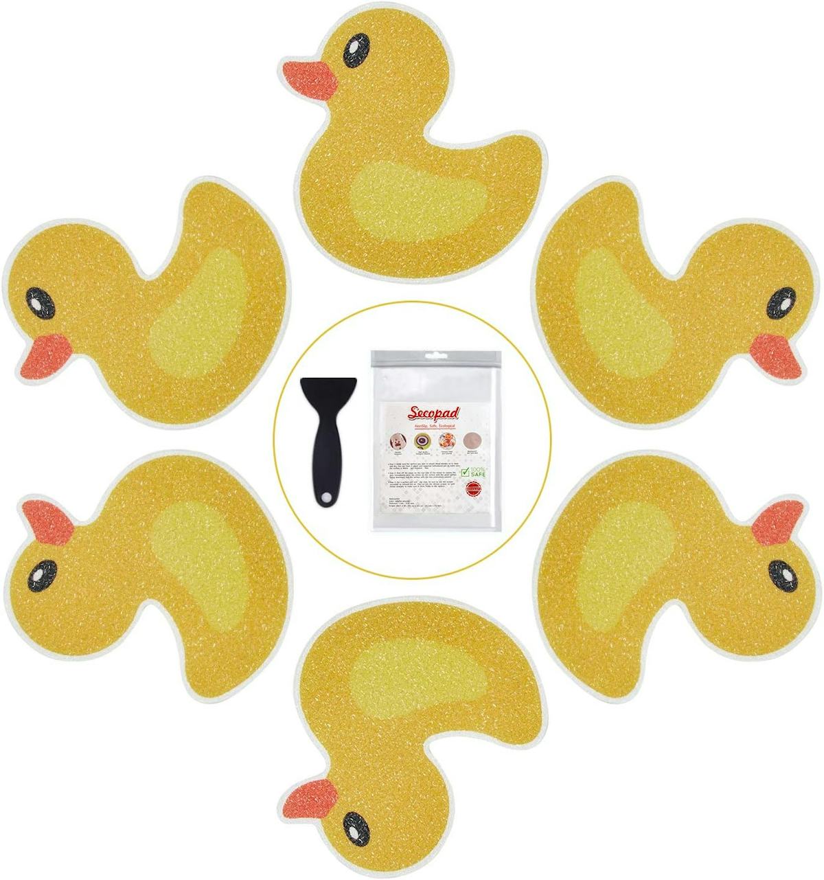 Estos antideslizantespegatinas para tinaañade agarre adicional sin la voluminosidad de una alfombra tradicional. Cada calcomanía se adhiere firmemente a superficies lisas de la bañera usando adhesivo removible, creando tracción texturizada que ayuda a reducir resbalones. El conjunto incluye 20 calcomanías, suficientes para cubrir la mayor parte del piso de la bañera, más una espátula de silicona para una instalación sencilla. El diseño del pato encantador agrega un toque juguetón mientras ayuda a hacer más seguro el momento del baño.