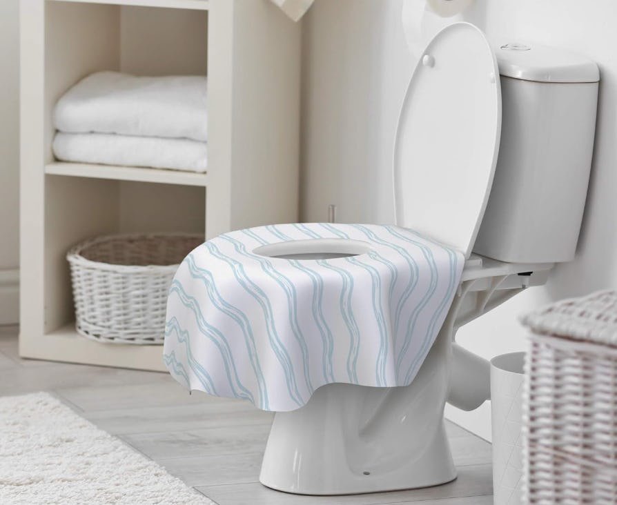 Toallas de asiento de inodoro desechables XXL que se adhieren y permanecen en su lugar