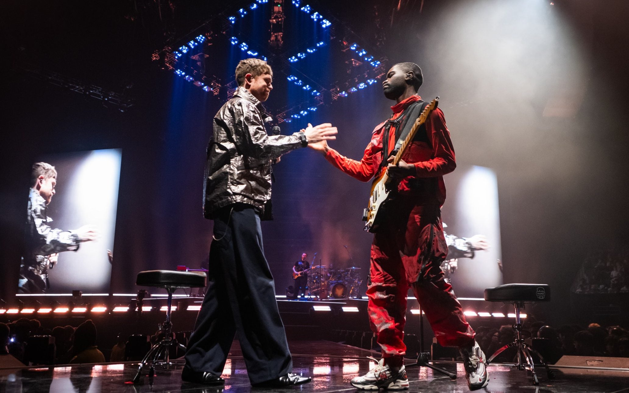 DuranteCapital de Cara de Tornillo, una canción sobre el lado más duro de Londres, las pantallas se iluminaron con bloques de viviendas. En otros momentos, se retiraron por completo, permitiendo una verdadera intimidad. Durante la canción principal de su último álbum, cientos de pequeñas bombillas brillaron sobre Dave como luciérnagas sincronizadas.