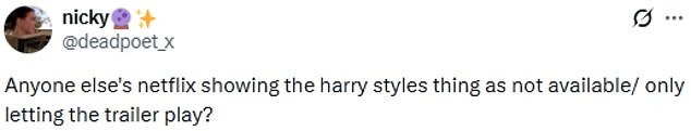 ¿A alguien más su Netflix muestra la cosa de Harry Styles como no disponible/ solo permite reproducir el tráiler?