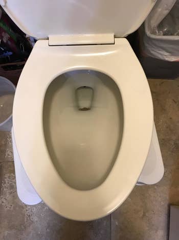 Revisión prometedora:Tenemos agua muy dura que deja depósitos de agua dura y manchas desagradables. Es vergonzoso tener invitados porque los inodoros están tan sucios. He probado tantos productos y soluciones de limpieza, desde aceites esenciales naturales hasta químicos fuertes que eran tan intensos que me sentí mareado el resto del día.Bueno, probé esta piedra pómez después de leer sobre ella en un artículo, y honestamente, la hype es real!Sí que requiere un poco de esfuerzo, pero la imagen después es solo de 20 minutos de frotar, lo suficientemente liviano que no sudé!La piedra sí que se gasta, pero creo que esta debería durarme al menos unos años. Así que si tienes baños vergonzosos, prueba con esto! —Stephanie Ray