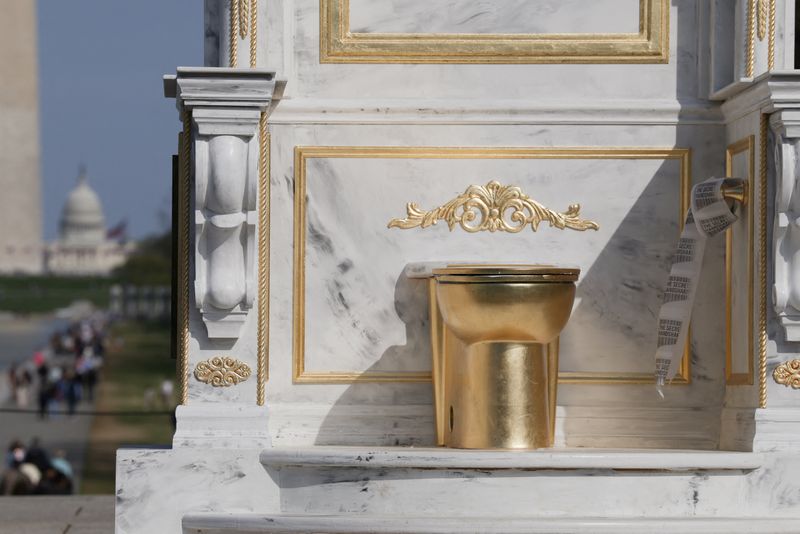 WASHINGTON, 30 de março () – Um grande trono com um vaso sanitário dourado foi colocado na National Mall em Washington como crítica às reformas do presidente dos Estados Unidos, Donald Trump, no Palácio Branco.