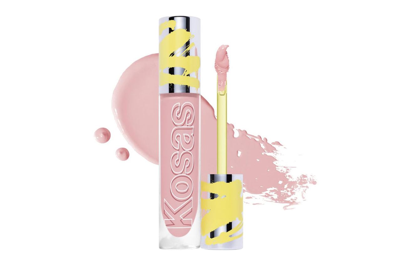 Para combinar con la base de piel-perfecta, el maquillador de Ha aplicó una pequeña cantidad de laResaltador de objetos brillantesen sombra Glimmerose sobre las mejillas y párpados para “un acabado suave y reflectante que capta la luz sin sobrecargar la piel”. Finalizó el look con laAceite para labios Kosas Wet.